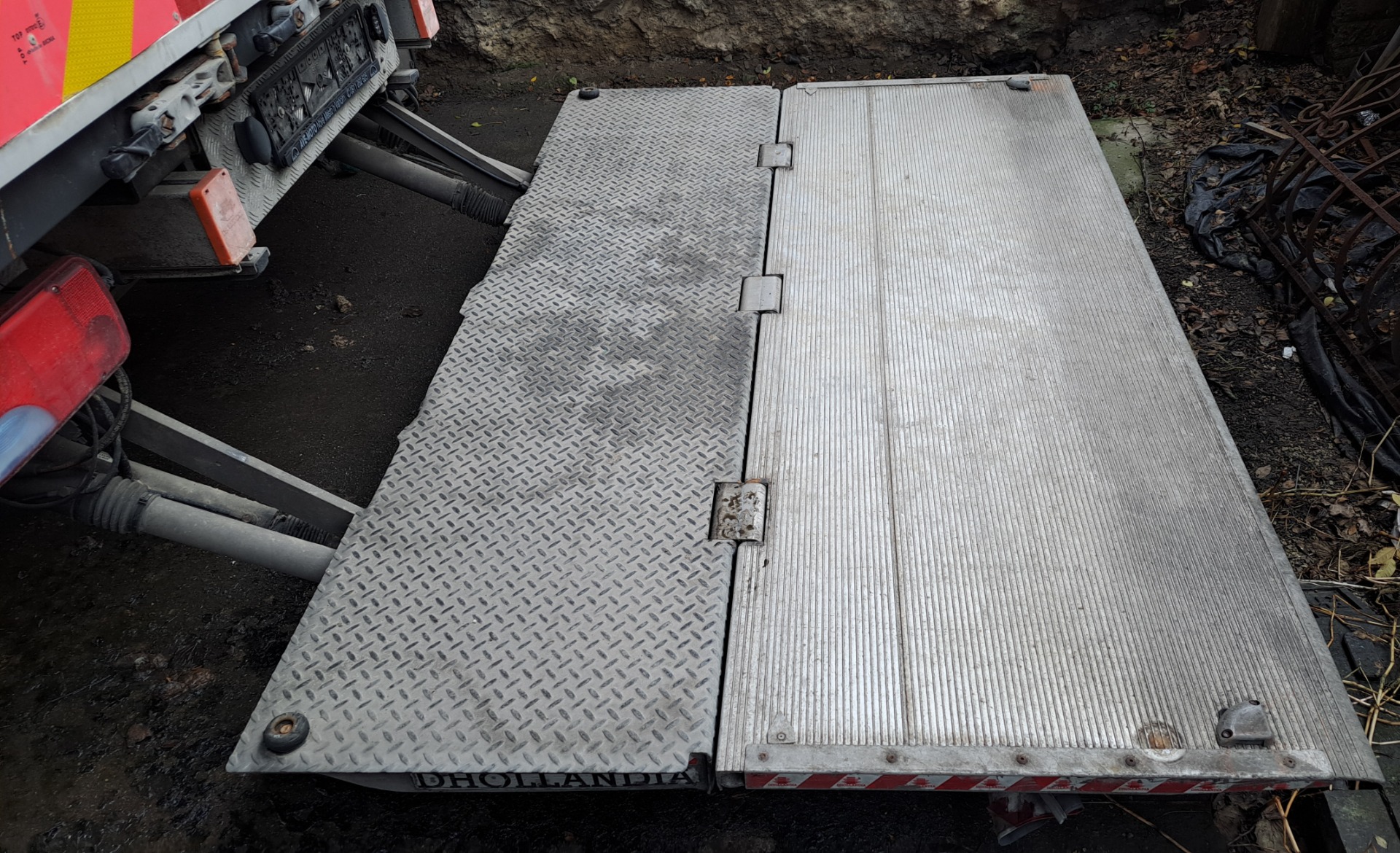 - Výbava: varovné blikače, žárově zinkovaný rám plošiny a platforma pevná část
