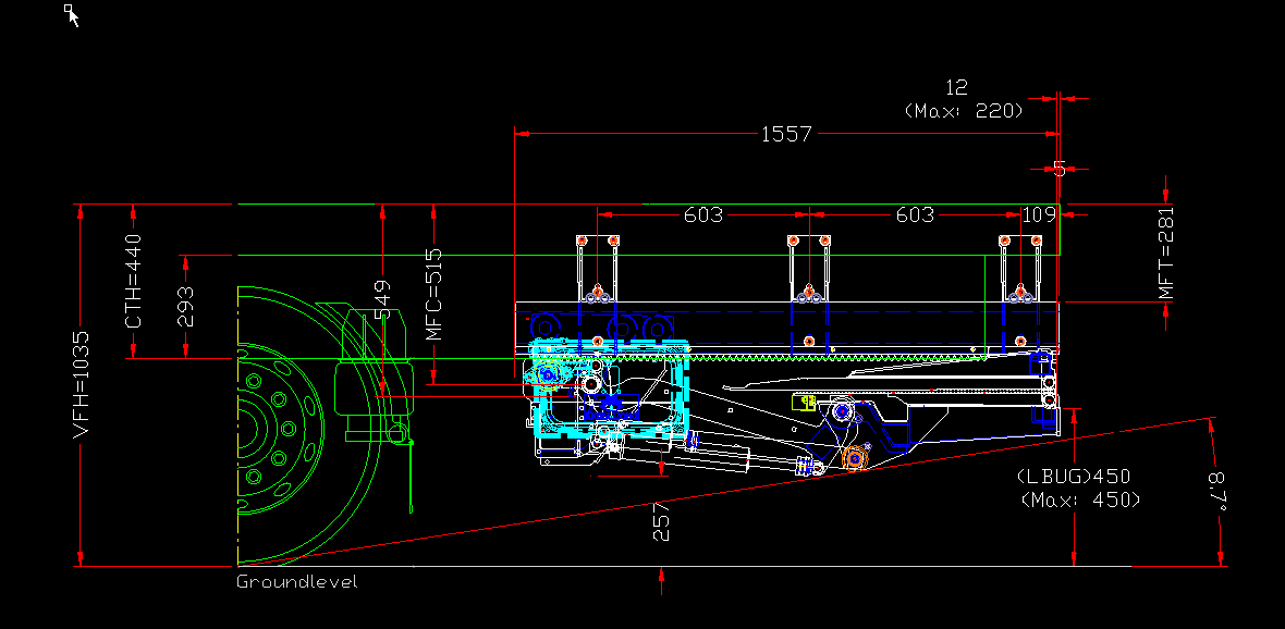- Potřebný převis min. 1557mm